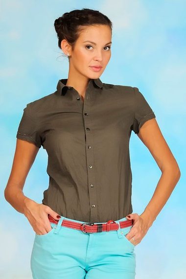 Классическая рубашка с коротким рукавом, чуть приталенного силуэта.