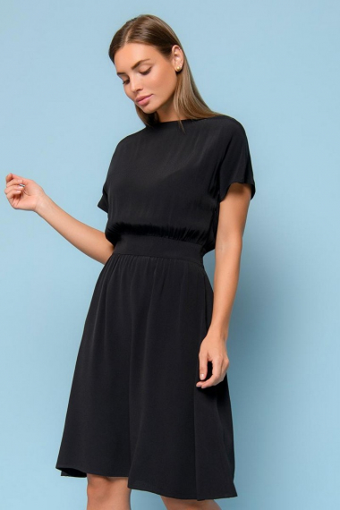 Фото товара 21960, черное платье мини с коротким рукавом